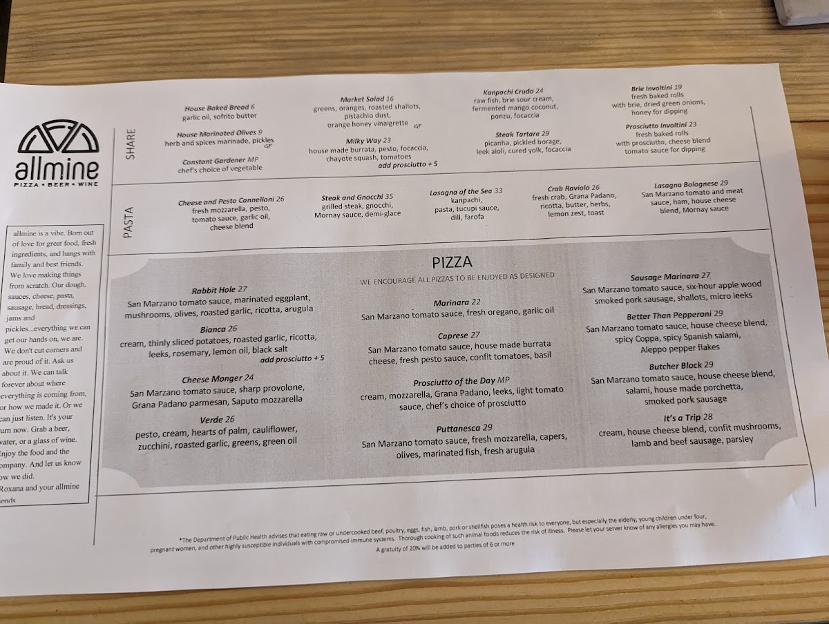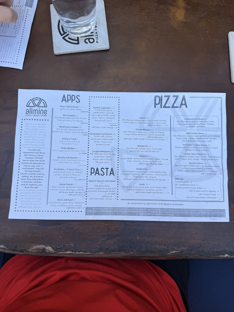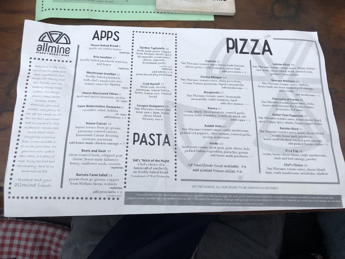 The menu at allmine offers a thoughtful blend of Italian favorites and creative twists, perfect for those seeking a relaxed yet refined dining experience. It balances comforting, familiar dishes like lasagna and classic Caesar salad with more inventive pizzas and fresh seasonal salads. The atmosphere invites guests to linger over the meal, whether enjoying a casual lunch or settling in for a cozy dinner.