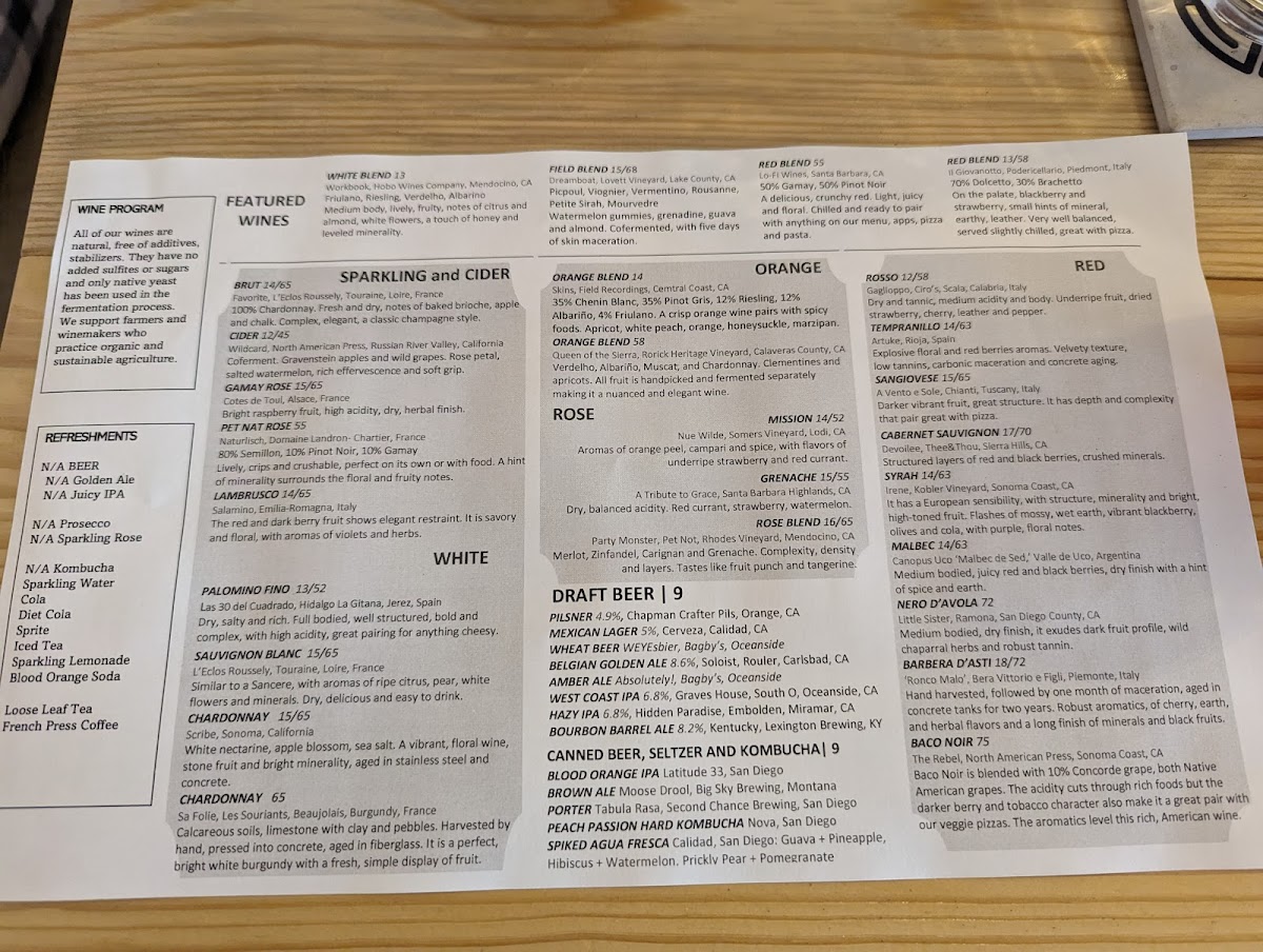Expect to find items made with locally sourced ingredients, including house-baked breads and thoughtful combinations like beet and goat cheese appetizers or the distinctive porchetta and honey pizza. The beverage selection, featuring a carefully curated list of natural and organic wines alongside beer, complements the menu’s fresh, straightforward flavors.